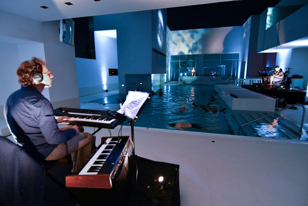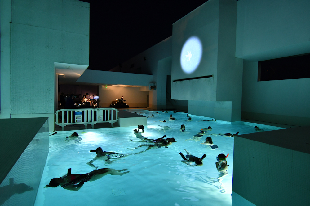 L’écoute subaquatique diffère de l’écoute aérienne : le spectre des fréquences audibles est interprété différemment par le cerveau, la sensibilité de l’écoute est troublée du fait de l’apesanteur, le son n’est plus perçu par les tympans mais par résonance osseuse, semblant venir de l’intérieur du crâne de celui qui écoute. Pratiqué par Michel Redolfi depuis 1980, le concert subaquatique est une expérience plus qu’acoustique, synesthésique.