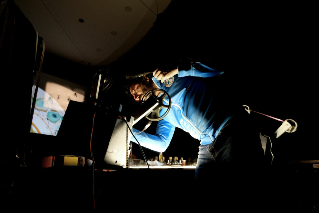 Images et musique sont réalisées en temps réel, improvisées sur le moment, et déploient tout un monde imaginaire.